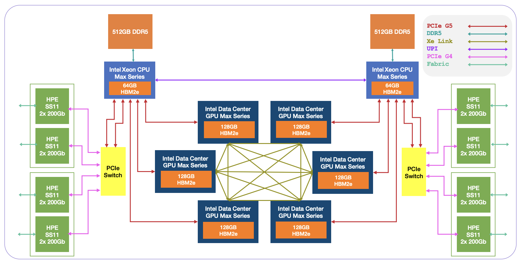 - 6x Intel Data Center GPU Max 1550 (Ponte Vecchio)